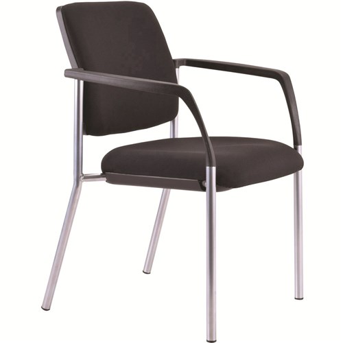 Buro Lindis 4 Leg Chair With Arms Silver Powdercoated Frame Black Fabric Seat and Back