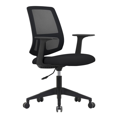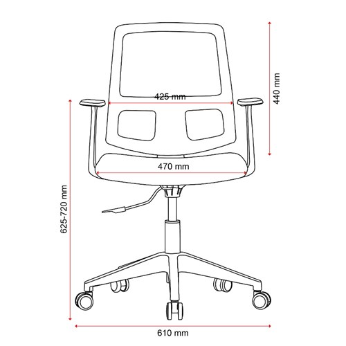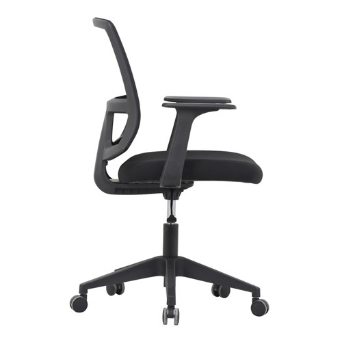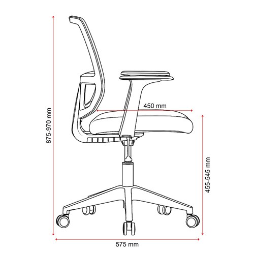 Composition: Mesh back, upholstered seat and strong nylon 5 star base with 50mm nylon castors. Fixed armrests for extra ergonomic support.