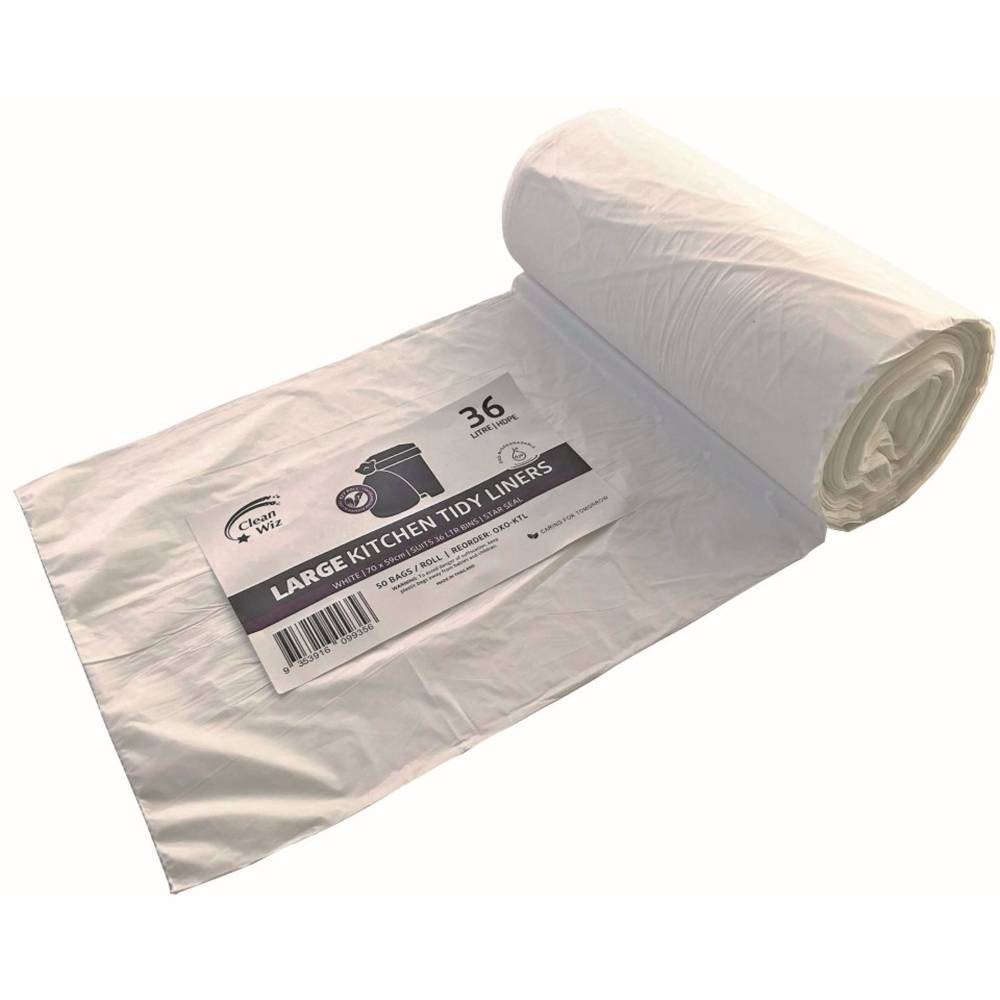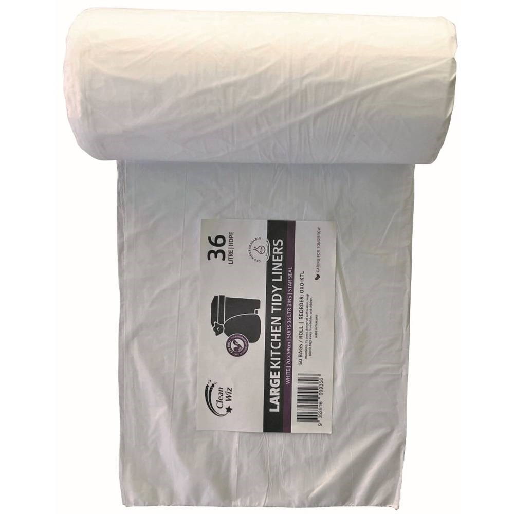Clean Wiz Oxo-Biodegradable Kitchen Tidy Liners 36L White Pack of 50