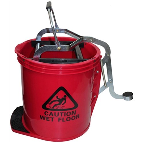 CLEANLINK H/DUTY MOP BUCKET Metal Wringer 16 Litre Red