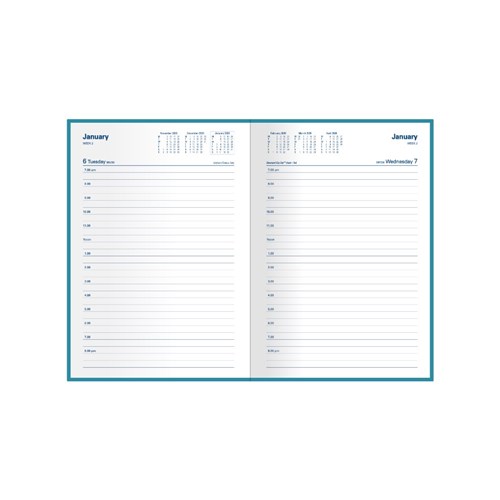 Bound in durable PVC with soft flexible cover. Printed on white paper, week numbers, Julian days, Australian and New Zealand holidays.