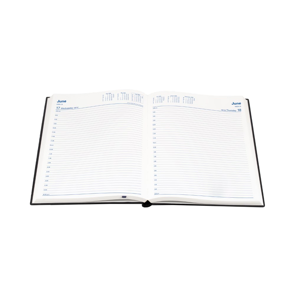 Bound in a highly durable, welded PVC padded cover. Printed on white paper, week numbers, Julian days.