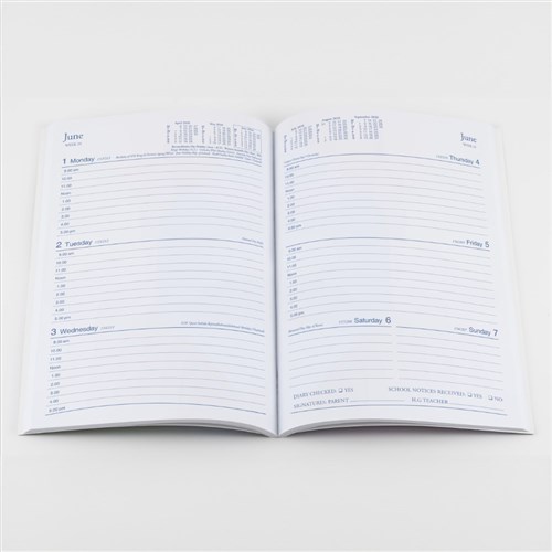 The range is available as an A5 Week to View Student Diary (spiral or perfect bound) and practical A4 and A5 wire weekly notebook.