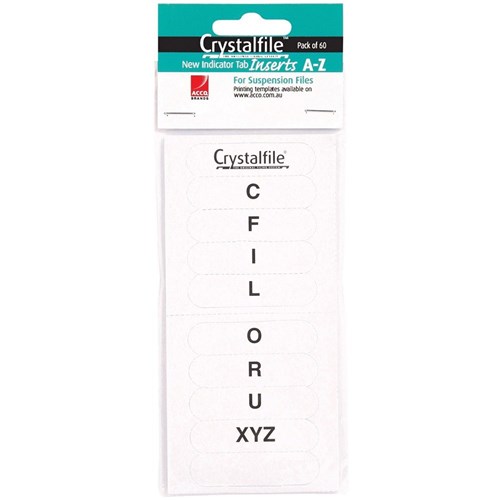 CRYSTALFILE INDICATOR TAB A-Z INSERTS (NEW STYLE) WHITE PK60 ROUND