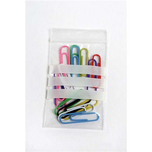 CUMBERLAND BAG RESEALABLE 50x75mm Pk100 SNAP SEAL WHITE WRIPTE ON STRIP