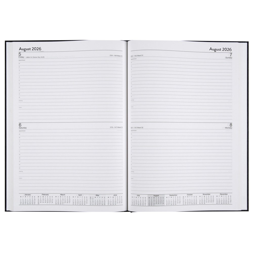 CUMBERLAND CLASSIC DIARY Week To View Casebound A4 Black 2026