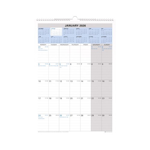 DEBDEN CALENDAR WALL PLANNER MONTH TO VIEW WIRO CE0013 300 X 432mm
