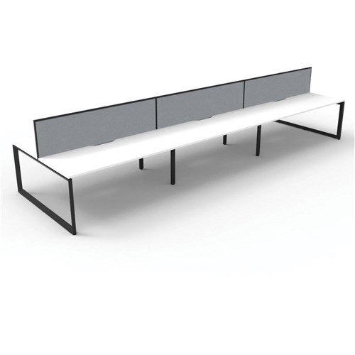 Deluxe Loop Workstation 6 Person With Screen 1200Wx750D White Top Black Double Frame