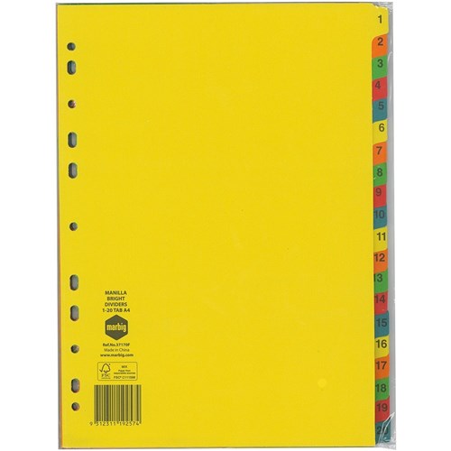 DIVIDERS A4 20 TAB MANILLA BRIGHT 37170