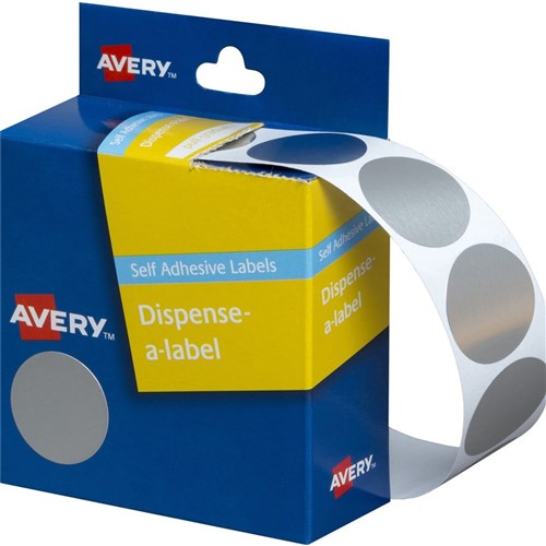 AVERY REMOVABLE DISPENSER LABELS 14MM ROUND SILVER PACK OF 500