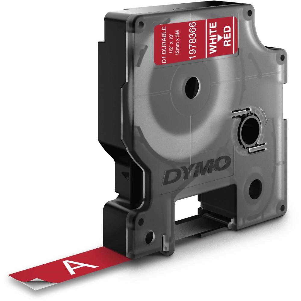 DYMO D1 DURABLE LABELLING TAPE Cassetes White on Red 12mmx3m