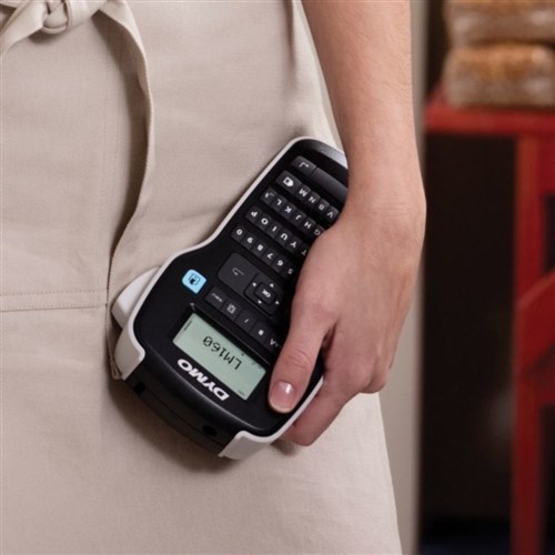 Prints on Dymo D1 label tape in 6, 9 and 12mm widths.