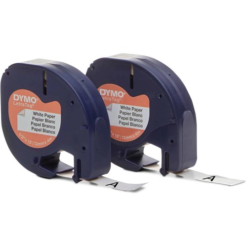 DYMO LETRATAG LABEL CASSETTE PAPER WHITE 12MM X 4M TWIN PK SD92630