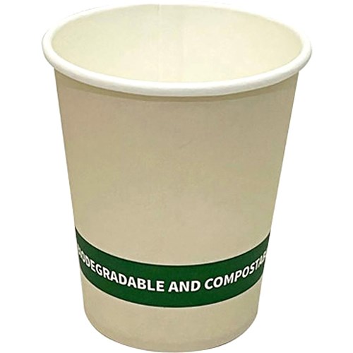 8oz (237mls) capacity, single-walled cups with a polylactic (PLA) bio-lining and 80mm diameter.