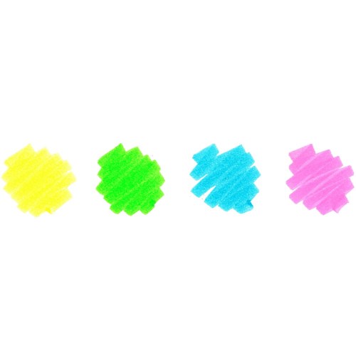 Brilliantly fluorescent colours Yellow, Green, Blue and Pink