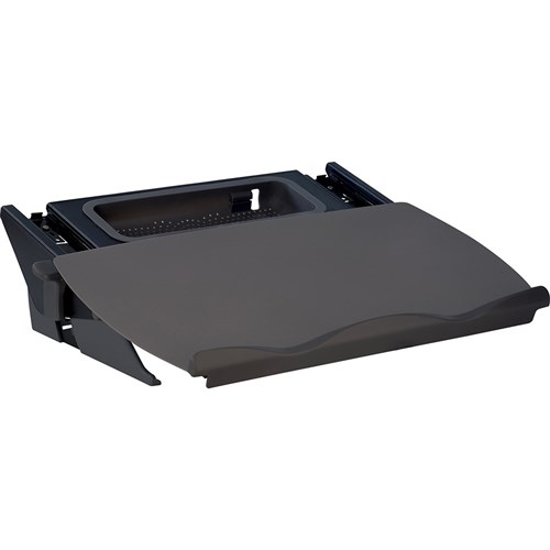Main platform glides freely forward to cover the keyboard creating an ergonomic writing area.
