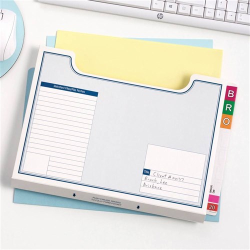 Feature printed panels on the covers to enable notes and related file information to be noted directly onto the file.