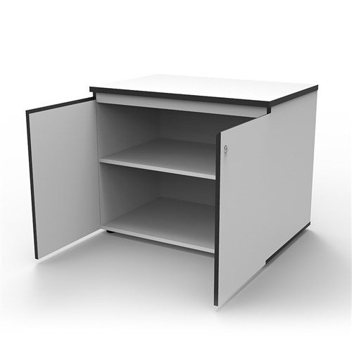 Infinity Swing 2 Door Storage Cupboard 730Hx900Wx600mmD Natural White with Black Edge