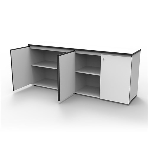 Infinity Swing 4 Door Storage Cupboard 730Hx1800Wx450mmD Natural White with Black Edge