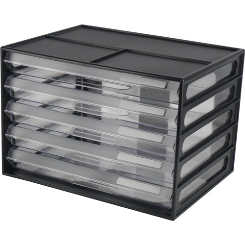 ITALPLAST A4 DOCUMENT CABNET 5 Drawer Black/Clear