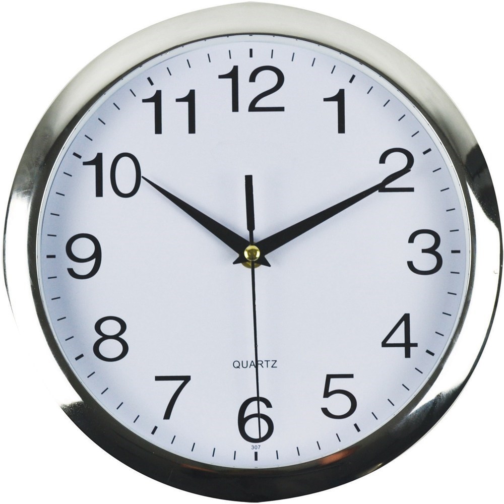 ITALPLAST WALL CLOCK 26cm Chrome Frame/White Face