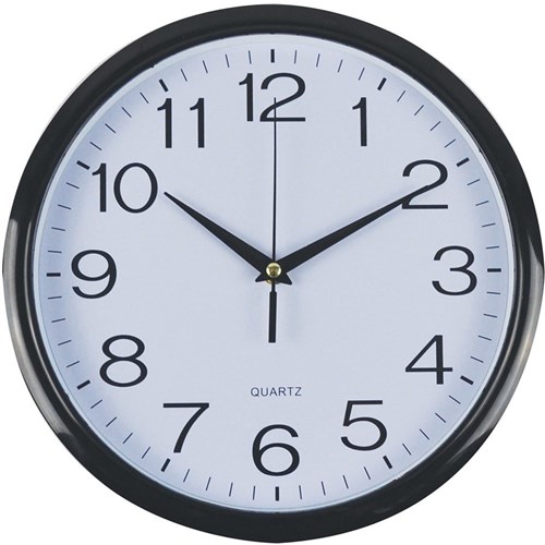 ITALPLAST 30CM WALL CLOCK Black Frame/White Face no glass front