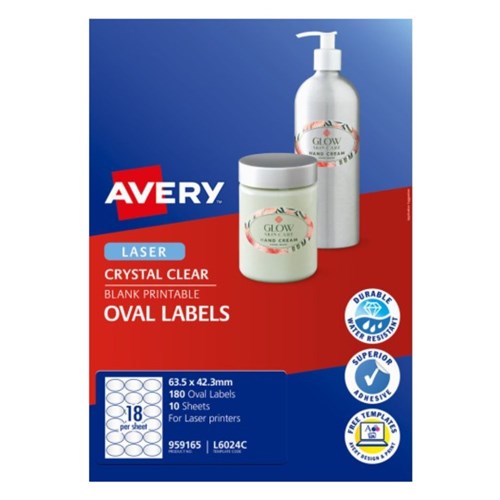 LASER LABEL CLEAR OVAL 18 PER SHEET PK 10