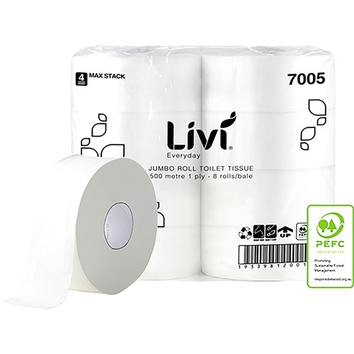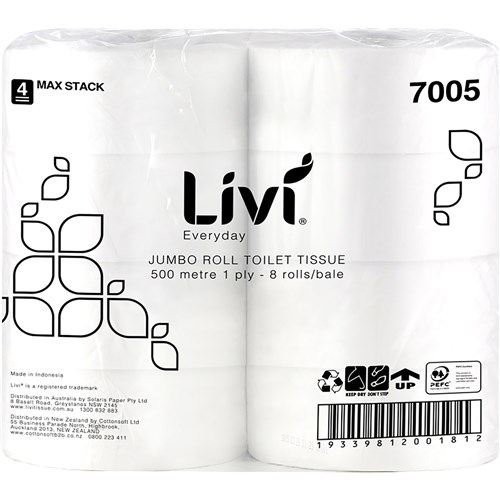LIVI BASICS TOILET TISSUE JUMBO 1 PLY 500M CTN 8