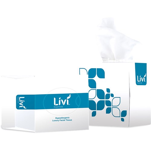 LIVI ESSENTIALS FACIAL TISSUE CUBE (HYPOALLERGENIC) 2 PLY 90 SHEETS CTN OF 24