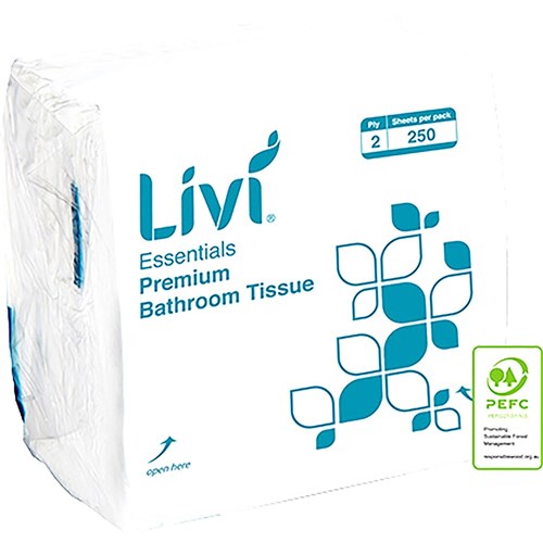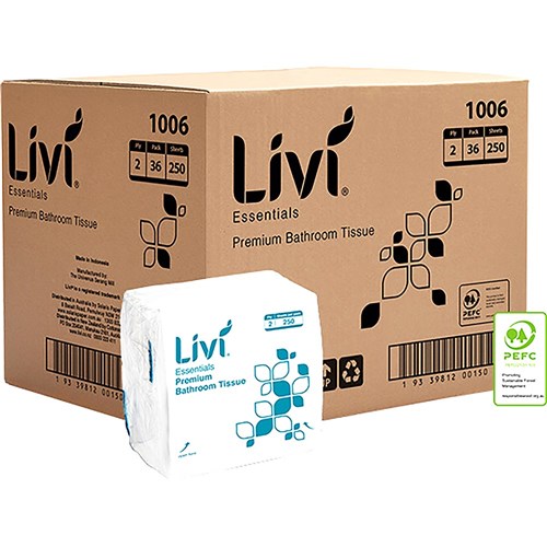 LIVI ESSENTIALS INTERLEAVED TOILET TISSUE 2 PLY 250 SHEETS CTN OF 36