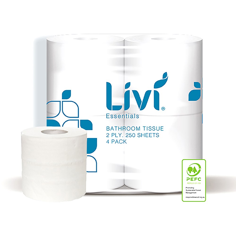 Livi Essentials Toilet Tissue 2 Ply 250 Sheets Pack 4 Carton of 12