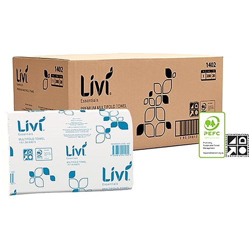 LIVI HAND TOWEL 1402 SLIMFOLD 1 PLY 200 SHEETS BOX OF 20 230 X 230 1402