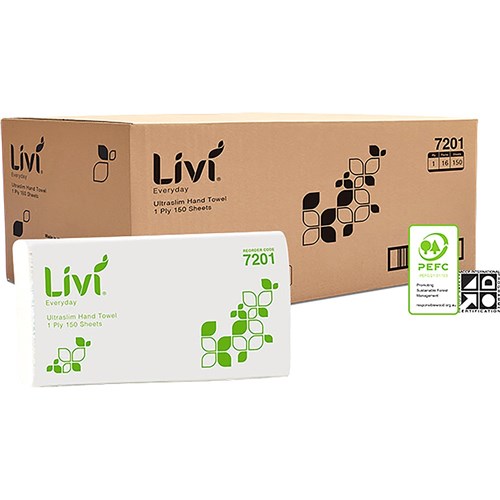 LIVI HAND TOWEL 7201 ULTRASLIM 1 PLY 150 SHEETS BOX OF 16