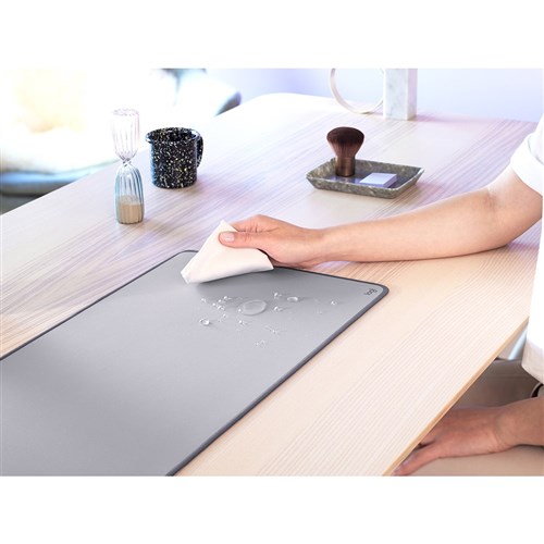 Logitech Desk Mat features a spill-proof coating that withstands accidental mishaps, so liquids can easily be wiped away.
