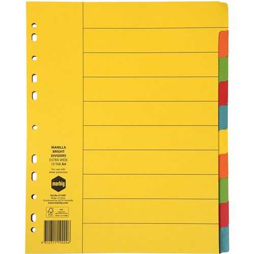 MARBIG 10 TAB MANILLA BRIGHTS EXTRA WIDE 37190