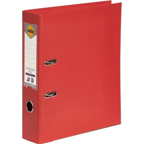 MARBIG A4 LEVER ARCH BRIGHTRED FOLDER LINEN FINISH RED