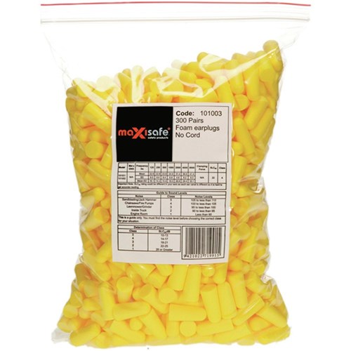 MAXISAFE DISPOSABLE EARPLUGS Uncorded Class 5 27dB pack 300