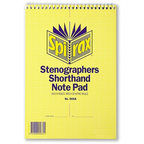 NOTEBOOK SPIRAX 566A STENOGRAPHER 200P TOP BOUND 225 X 152 CVC