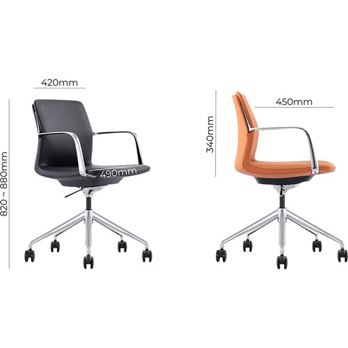 • Chair Dimension: Seat Width 490mm, Seat Depth 450mm, Back Height: 340mm, Overall Height 820 - 880mm.