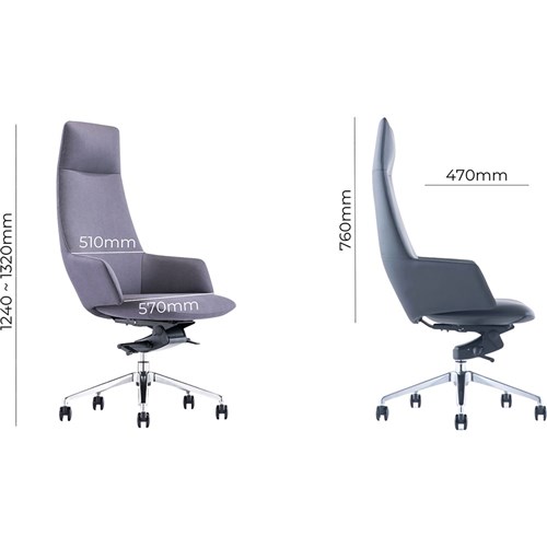 • Chair Dimension: Seat Width 300-585mm, Seat Depth 470mm, Back Height: 785mm, Overall Height 1240 - 1320mm.