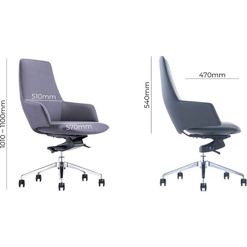 Chair Dimension: Seat Width 570mm, Seat Depth 470mm, Back Height: 540mm, Overall Height 1010 - 11000mm.
