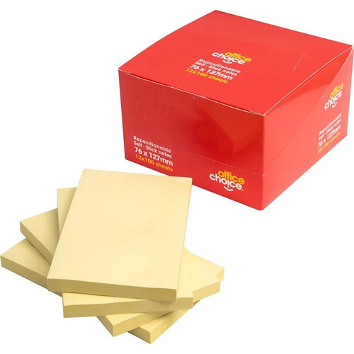 OFFICE CHOICE 76X127mm STICKY NOTES YELLOW PACK 12