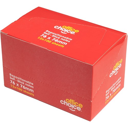 OFFICE CHOICE 76X76mm STICKY NOTES YELLOW PACK 12