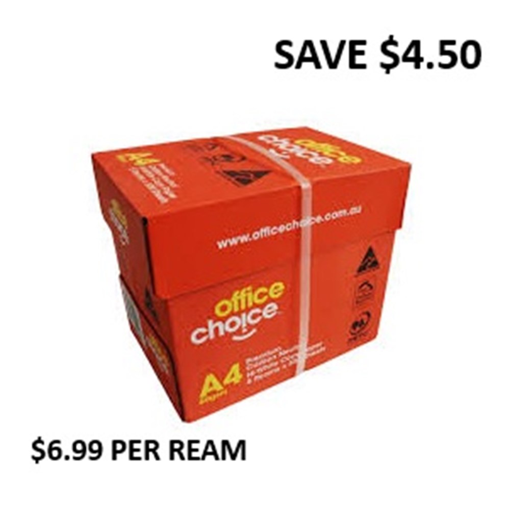 OFFICE CHOICE A4 BOX 5 REAMS COPY PAPER $6.99 INC PER REAM PREMIUM