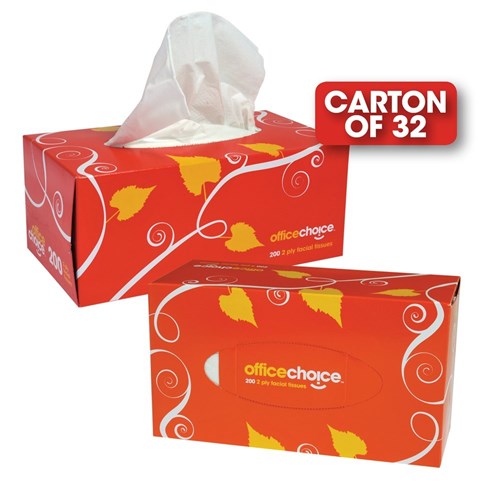 OFFICE CHOICE FACIAL TISSUES PREMIUM 2 PLY 200 SHEET SINGLE BOX CARTON = 32 **BTS*****CVC