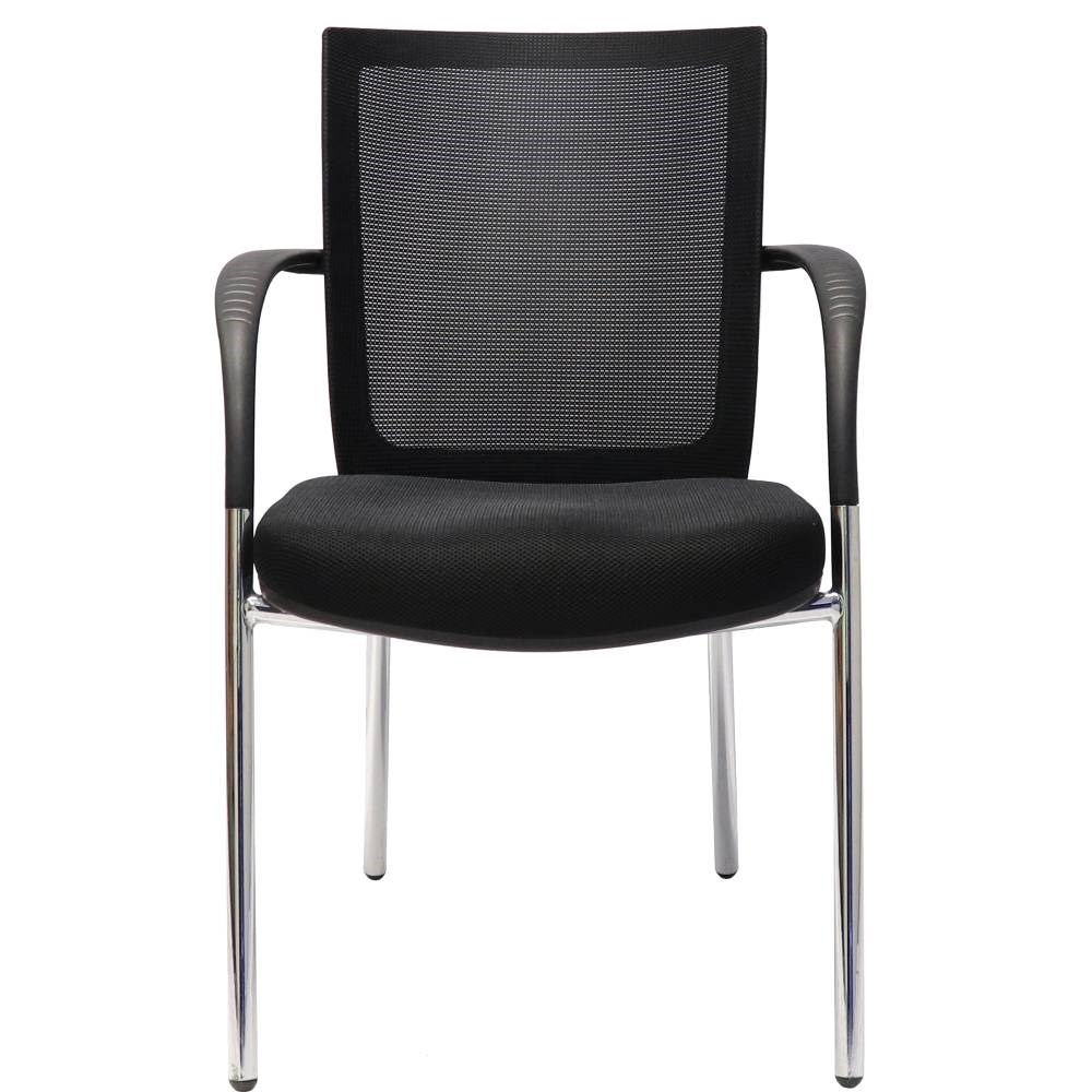 OFFICE MESH BACK VISITOR CHAIR 4 LEG CHROME 120KG WEIGHT RATE FIXED ARMS BLACK FABRIC SEAT