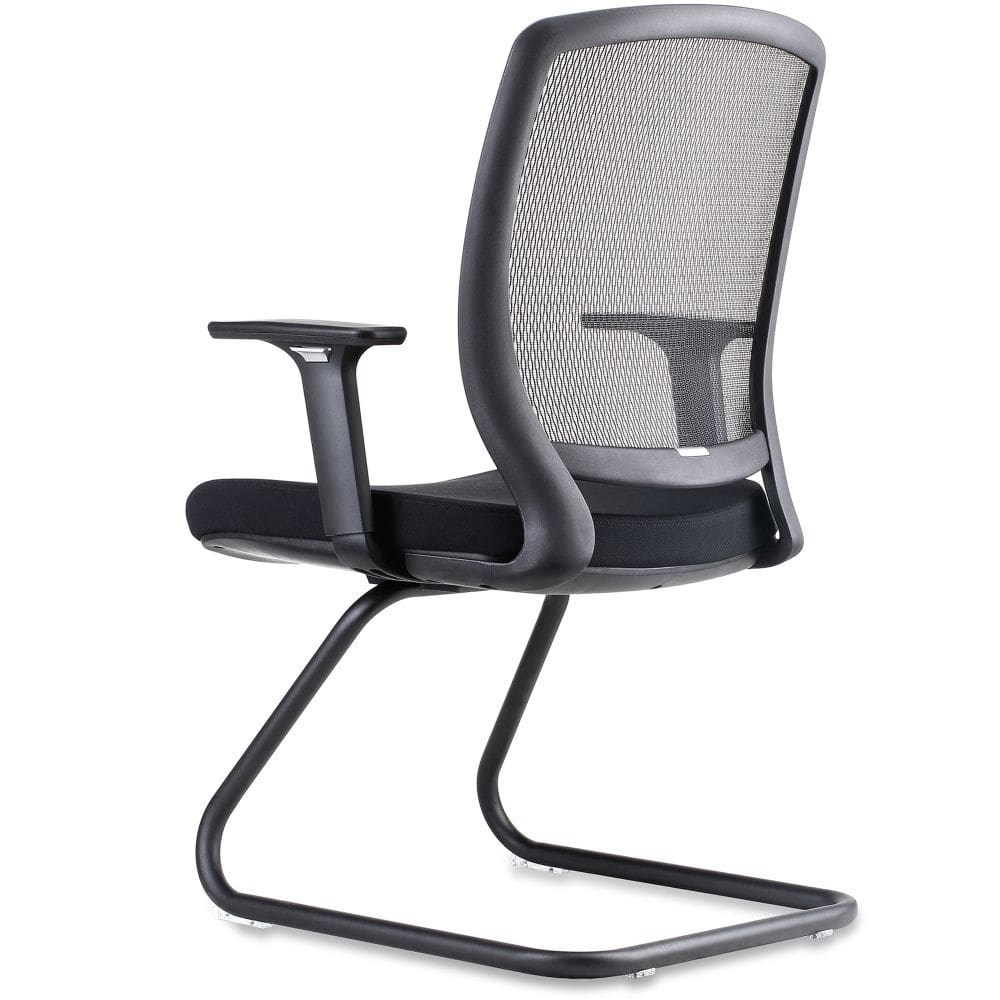 Mesh back visitor chair with ample seat and back size and adjustable arms, with modern black cantilever base. Ideal visitor chair to go with any mesh back desk chair or use as meeting chair.