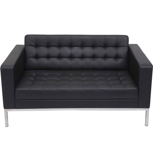 OFFICE RECEPTION LOUNGE CHAIR VENUS 2 SEATER S/STEEL FRAME 280KG WEIGHT RATE BLACK PU
