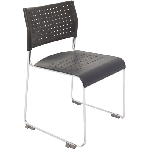 OFFICE WIMBLEDON VISITOR CHAIR CHROME SLED BASE 110KG WEIGHT RATE BLACK P/P BACK & SEAT