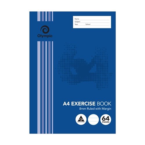OLYMPIC EXERCISE BOOK A4 8MM RULED RED MARGIN 64 PAGE 140749 E864 BTS